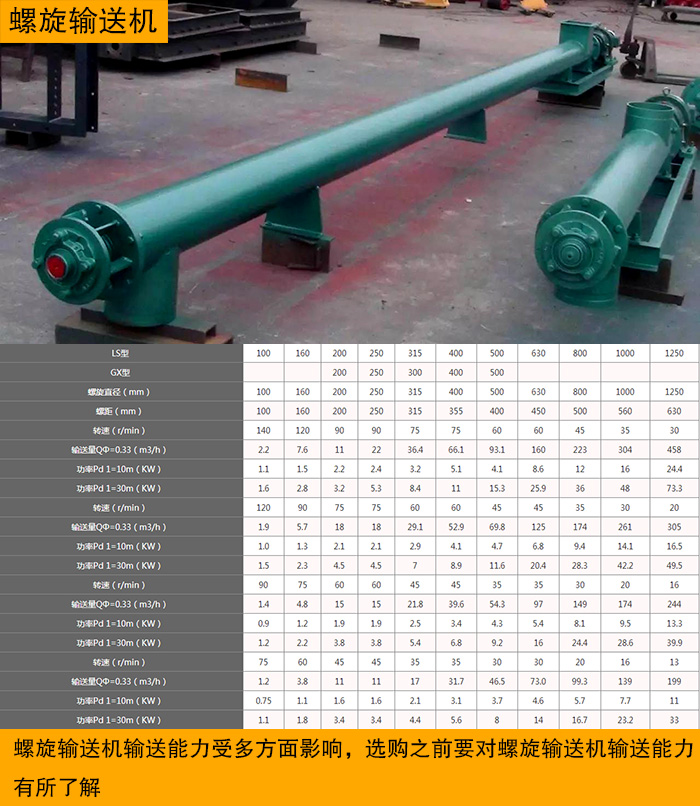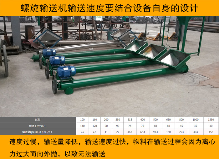 螺旋輸送機(jī)輸送速度可轉(zhuǎn)換成輸送能力,螺旋輸送機(jī)的轉(zhuǎn)速越快,輸送效果越好。但是螺旋輸送機(jī)輸送速度要結(jié)合設(shè)備自身的設(shè)計(jì)。