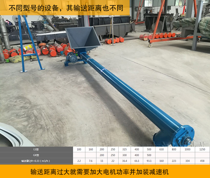 輸送距離大——選擇水平螺旋輸送機(jī)/電機(jī)功率大的