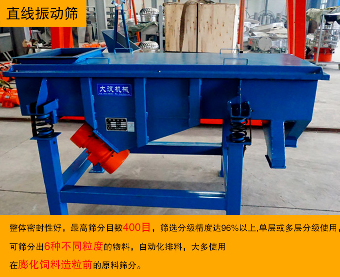 直線振動(dòng)篩為雙電機(jī)驅(qū)動(dòng),使物料在篩網(wǎng)上被拋起,同時(shí)向前作直線運(yùn)動(dòng),物料從給料機(jī)均勻地進(jìn)入篩分機(jī)的進(jìn)料口,通過(guò)多層篩網(wǎng)產(chǎn)生數(shù)種規(guī)格的篩上物、篩下物,分別從各自的出口排出。顆粒直線振動(dòng)篩具有穩(wěn)定可靠、消耗少、噪音低、壽命長(zhǎng)、振型穩(wěn)、篩分效率高等優(yōu)點(diǎn)。