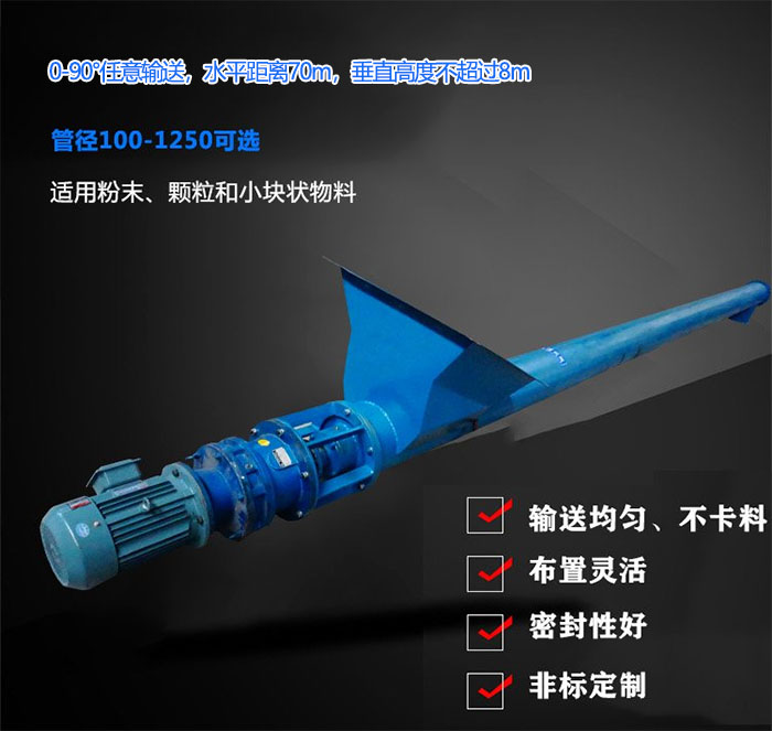 6、管式螺旋輸送機(jī)能夠根據(jù)實(shí)際應(yīng)用需要選擇合適的軸承、進(jìn)出料口形式、材質(zhì)以及其他特殊的機(jī)器配件。