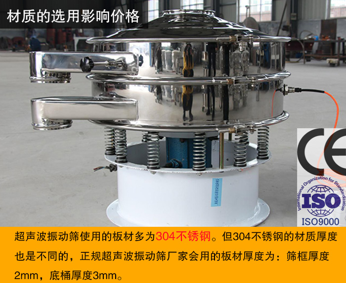 由于超聲波振動篩針對的物料多為精細(xì)物料,所以使用的板材多為304不銹鋼。但304不銹鋼的材質(zhì)厚度也是不同的,正規(guī)超聲波振動篩廠家會用的板材厚度為:篩框厚度2mm,底桶厚度3mm。而如果想要降低材質(zhì)成本就會有使用較薄的材質(zhì)。但這樣引起的后果就是一旦激振力強或使用時間較長,篩框容易出現(xiàn)斷裂等損壞現(xiàn)象,嚴(yán)重影響設(shè)備使用壽命和生產(chǎn)進(jìn)度。