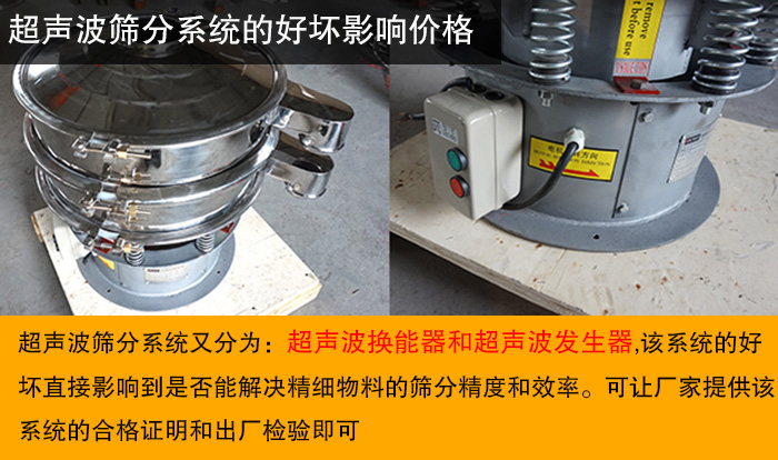 超聲波旋振篩是將220V、50Hz或110V、60Hz電能轉(zhuǎn)化為18KHz的高頻電能,輸入超聲換能器,將其變成18KHz機械振動,大大提高了振動篩的各種效果,從而達(dá)到高效篩分和清網(wǎng)的目的。但是在選購超聲波振動篩的時候,市場價格卻相差很大,明明工作原理一致,外觀也并無差別,同型號的超聲波振動篩價格有時相差巨大。那么影響超聲波振動篩價格的因素有哪些呢?下面即是相關(guān)介紹。