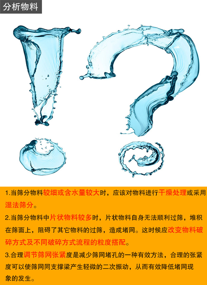 1.當篩分物料較細或含水量較大時,應(yīng)該對物料進行干燥處理或采用濕法篩分。