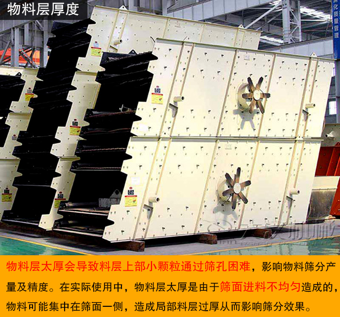 圓振動(dòng)篩物料層太厚也是影響圓振動(dòng)篩篩分效果的因素之一,物料層太厚會(huì)導(dǎo)致料層上部小顆粒通過篩孔困難,影響物料篩分產(chǎn)量及精度。在實(shí)際使用中,物料層太厚是由于篩面進(jìn)料不均勻造成的,物料可能集中在篩面一側(cè),造成局部料層過厚從而影響篩分效果。