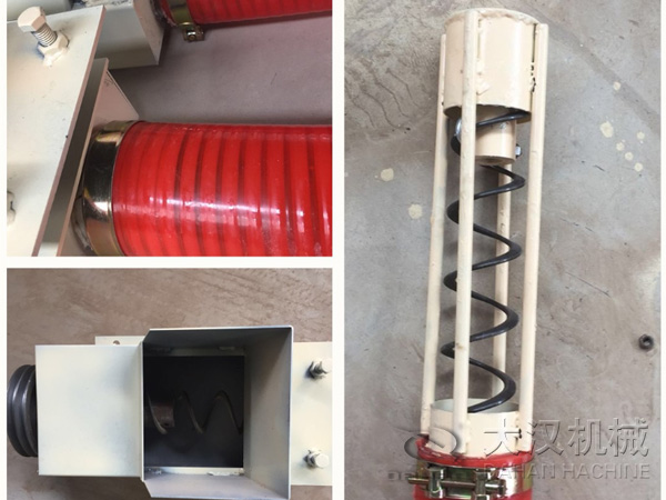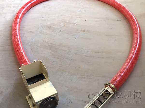 吸糧機(jī)的工作原理是無(wú)軸螺旋提升,啟動(dòng)電機(jī)后,電機(jī)帶動(dòng)螺旋彈簧旋轉(zhuǎn),在進(jìn)料口的糧食就會(huì)在旋轉(zhuǎn)彈簧的作用下,沿著彈簧的旋轉(zhuǎn)方向上升,到達(dá)出料口時(shí),由于重力作用,自動(dòng)卸糧。