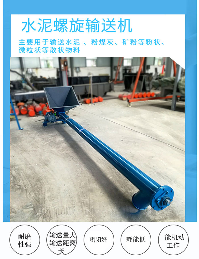 水泥螺旋輸送機(jī)是一種封閉管內(nèi)利用旋轉(zhuǎn)連續(xù)螺旋葉片帶推送物料的輸送機(jī)械,主要用于輸送水泥 、粉煤灰、礦粉等粉狀、微粒狀等散狀物料,不宜輸送粘性大、易結(jié)塊、纖維等原料,可以按照用戶輸送現(xiàn)場(chǎng)情況分為水平、傾斜及垂直方向的輸送,常用于水泥攪拌站中。