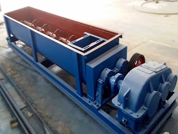 雙軸螺旋輸送機(jī)一般由輸送機(jī)本體、進(jìn)出料口及驅(qū)動裝置三大部分組成。