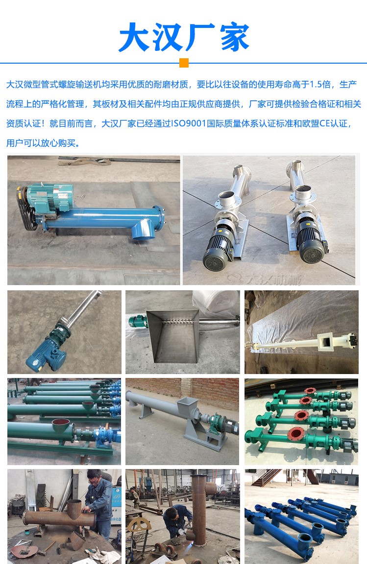 簡述:微型管式螺旋輸送機(jī)根據(jù)每小時(shí)輸送量在1-18立方,直徑有100mm、125mm、160mm、200mm,主要用于小批量粉狀物料的均勻連續(xù)供料、卸料