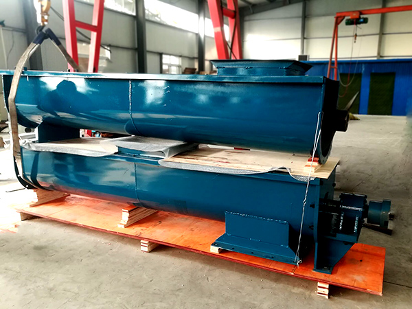 物料從進料口加入,當(dāng)轉(zhuǎn)軸轉(zhuǎn)動時,旋轉(zhuǎn)的螺旋葉片將物料推移而進行輸送,但由于物料本身的重力和料槽對物料的摩擦力的緣故,才不與螺旋葉片一起旋轉(zhuǎn),在由螺旋軸的拖動下,物料往出料口方向移動,將物料輸送到料倉或料池中。