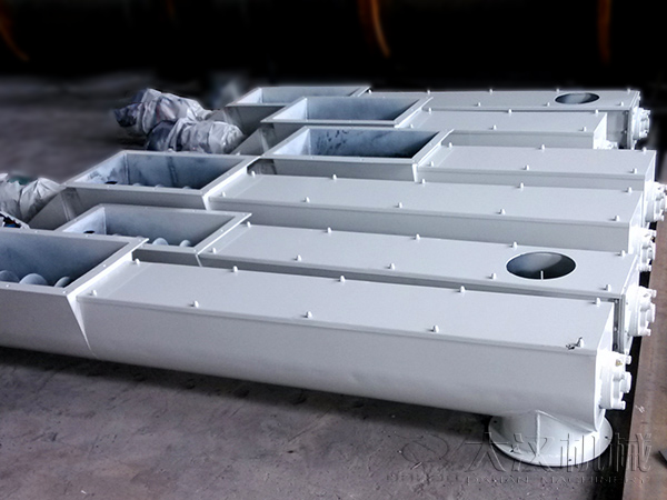 U型螺旋輸送機由驅(qū)動裝置(減速機和電機)、頭部裝配、機殼、螺旋體、槽體襯板、進料口、出料口、機蓋、底座等組成。